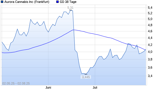 Mit dem Anstieg auf 4,07 EUR hat die Aurora Cannabis-Aktie am 01.08.2025 die 38-Tage-Linie nach oben gekreuzt.