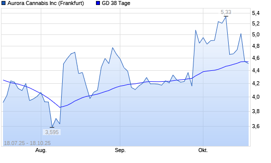 Mit dem Rücksetzer auf 4,51 EUR hat die Aurora Cannabis-Aktie am 17.10.2025 die 38-Tage-Linie nach unten gekreuzt.