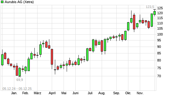 Mit dem Anstieg auf 121,20 EUR hat die Aurubis-Aktie (ISIN DE0006766504) am 04.12.2025 ein neues All-Time-High erreicht und damit den Kurs vom 07.10.2025 eingestellt.