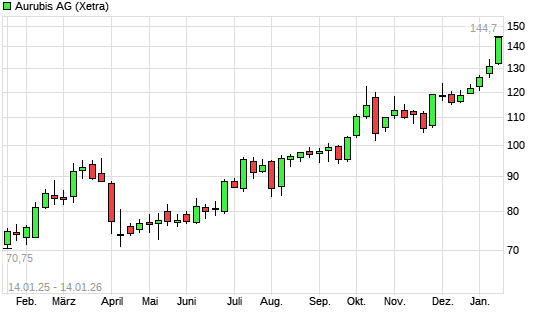 Mit dem Anstieg auf 141,30 EUR hat die Aurubis-Aktie (ISIN DE0006766504) am 13.01.2026 ein neues All-Time-High erreicht und damit den Kurs vom 12.01.2026 eingestellt.