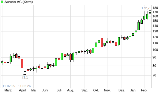 Mit dem Anstieg auf 169,50 EUR hat die Aurubis-Aktie (ISIN DE0006766504) am 10.02.2026 ein neues All-Time-High erreicht und damit den Kurs vom 09.02.2026 eingestellt.