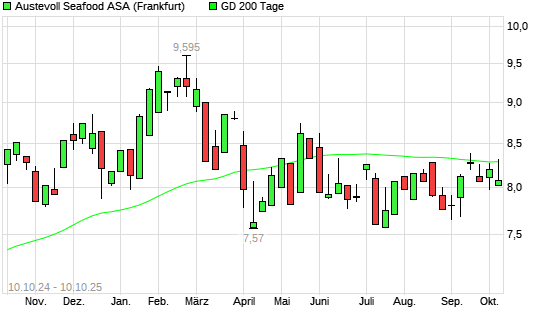 Mit dem Anstieg auf 8,31 EUR hat die Austevoll Seafood-Aktie am 09.10.2025 die 200-Tage-Linie nach oben gekreuzt.