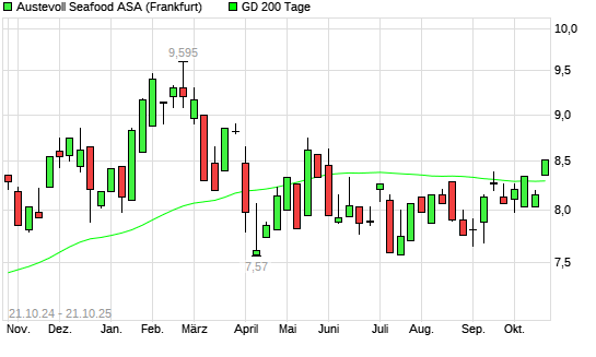 Mit dem Anstieg auf 8,35 EUR hat die Austevoll Seafood-Aktie am 20.10.2025 die 200-Tage-Linie nach oben gekreuzt.