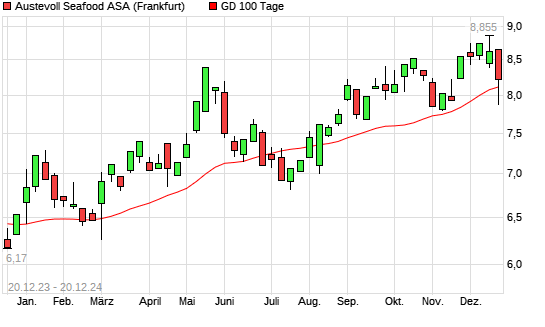 Mit dem Rücksetzer auf 7,89 EUR hat die Austevoll Seafood-Aktie am 19.12.2024 die 100-Tage-Linie nach unten gekreuzt.