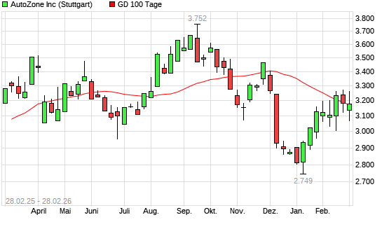 Mit dem Anstieg auf 3.172,00 EUR hat die AutoZone-Aktie am 27.02.2026 die 100-Tage-Linie nach oben gekreuzt.