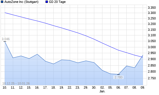 Mit dem Anstieg auf 2.932,00 EUR hat die AutoZone-Aktie am 09.01.2026 die 20-Tage-Linie nach oben gekreuzt.