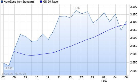 Mit dem Anstieg auf 3.096,00 EUR hat die AutoZone-Aktie am 06.02.2026 die 20-Tage-Linie nach oben gekreuzt.