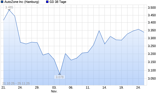 Mit dem Rücksetzer auf 3.337,00 EUR hat die AutoZone-Aktie am 24.11.2025 die 38-Tage-Linie nach unten gekreuzt.