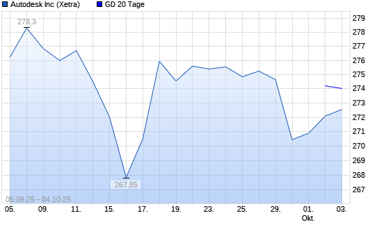 Mit dem Anstieg auf 274,60 EUR hat die Autodesk-Aktie am 03.10.2025 die 20-Tage-Linie nach oben gekreuzt.