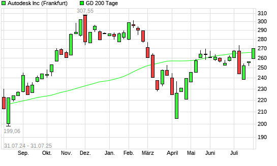 Mit dem Anstieg auf 268,25 EUR hat die Autodesk-Aktie am 30.07.2025 die 200-Tage-Linie nach oben gekreuzt.