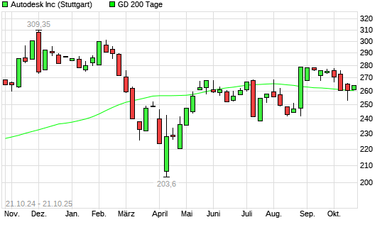 Mit dem Anstieg auf 260,90 EUR hat die Autodesk-Aktie am 20.10.2025 die 200-Tage-Linie nach oben gekreuzt.