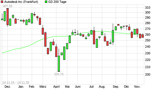 Mit dem Anstieg auf 260,15 EUR hat die Autodesk-Aktie am 13.11.2025 die 200-Tage-Linie nach oben gekreuzt.