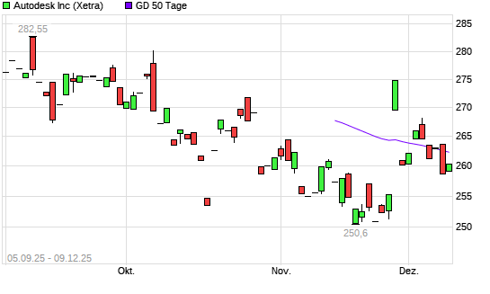 Mit dem Anstieg auf 262,65 EUR hat die Autodesk-Aktie am 08.12.2025 die 50-Tage-Linie nach oben gekreuzt.
