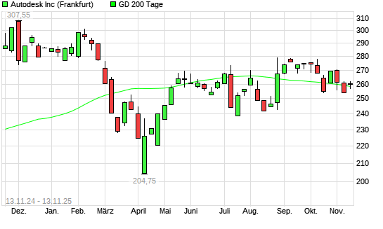 Mit dem Rücksetzer auf 257,05 EUR hat die Autodesk-Aktie am 12.11.2025 die 200-Tage-Linie nach unten gekreuzt.