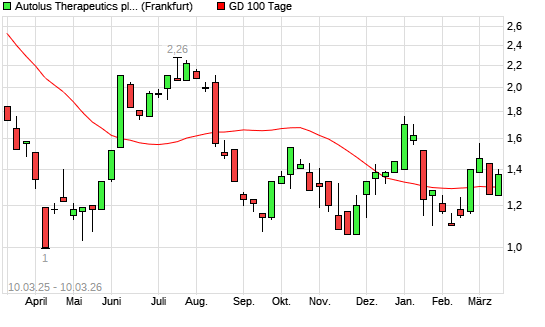 Mit dem Anstieg auf 1,40 EUR hat die Autolus Therapeutics Plc-Aktie am 09.03.2026 die 100-Tage-Linie nach oben gekreuzt.