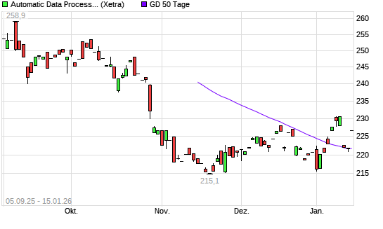 Mit dem Rücksetzer auf 221,10 EUR hat die Automatic Data Processing-Aktie am 14.01.2026 die 50-Tage-Linie nach unten gekreuzt.