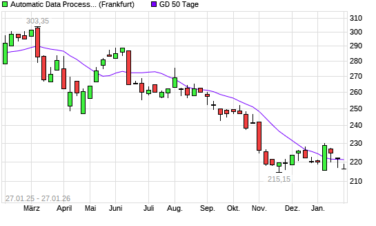 Mit dem Rücksetzer auf 218,00 EUR hat die Automatic Data Processing-Aktie am 26.01.2026 die 50-Tage-Linie nach unten gekreuzt.