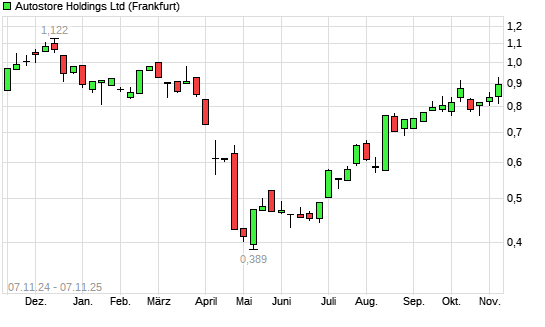 Mit dem Anstieg auf 0,93 EUR hat die Autostore Holdings-Aktie (ISIN BMG0670A1099) am 06.11.2025 ein neues 6-Monats-Hoch erreicht und damit den Kurs vom 08.10.2025 eingestellt.