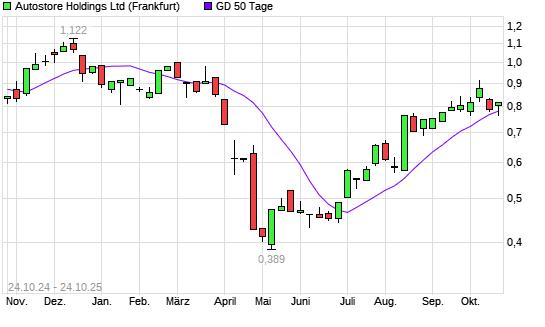 Mit dem Rücksetzer auf 0,76 EUR hat die Autostore Holdings-Aktie am 23.10.2025 die 50-Tage-Linie nach unten gekreuzt.