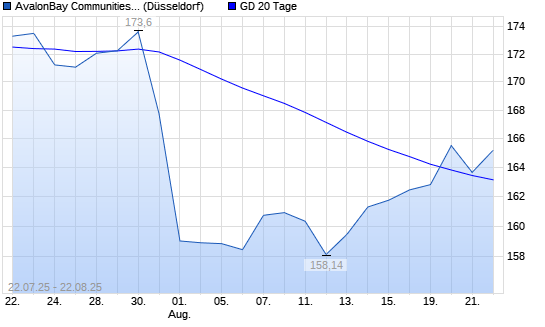 Mit dem Anstieg auf 163,90 EUR hat die AvalonBay Communities-Aktie am 21.08.2025 die 20-Tage-Linie nach oben gekreuzt.