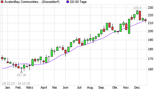 Mit dem Rücksetzer auf 212,85 EUR hat die AvalonBay Communities-Aktie am 18.12.2024 die 50-Tage-Linie nach unten gekreuzt.