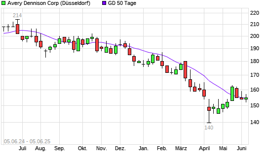 Mit dem Anstieg auf 157,00 EUR hat die Avery Dennison-Aktie am 04.06.2025 die 50-Tage-Linie nach oben gekreuzt.