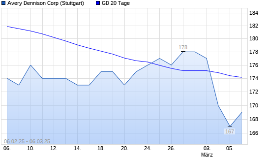 Mit dem Rücksetzer auf 170,00 EUR hat die Avery Dennison-Aktie am 05.03.2025 die 20-Tage-Linie nach unten gekreuzt.