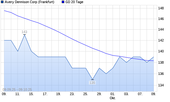 Mit dem Rücksetzer auf 138,00 EUR hat die Avery Dennison-Aktie am 08.10.2025 die 20-Tage-Linie nach unten gekreuzt.