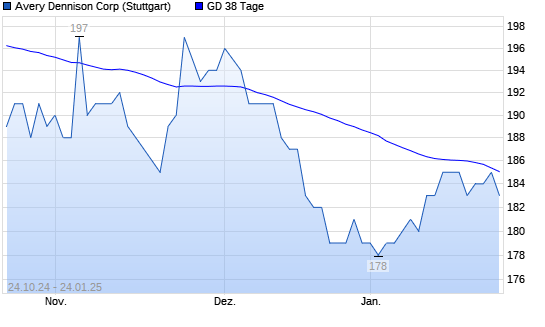 Mit dem Rücksetzer auf 182,00 EUR hat die Avery Dennison-Aktie am 23.01.2025 die 38-Tage-Linie nach unten gekreuzt.