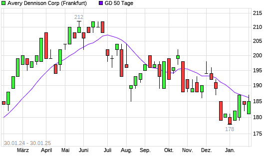 Mit dem Rücksetzer auf 185,00 EUR hat die Avery Dennison-Aktie am 29.01.2025 die 50-Tage-Linie nach unten gekreuzt.