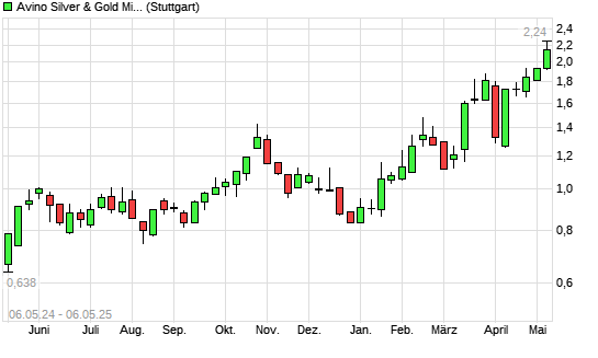 Mit dem Anstieg auf 2,02 EUR hat die Avino Silver & Gold Mines-Aktie (ISIN CA0539061030) am 05.05.2025 ein neues 5-Jahres-Hoch erreicht und damit den Kurs vom 28.04.2025 eingestellt.