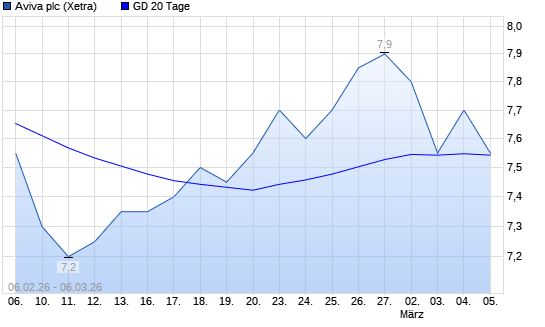 Mit dem Anstieg auf 7,55 EUR hat die Aviva-Aktie am 05.03.2026 die 20-Tage-Linie nach oben gekreuzt.