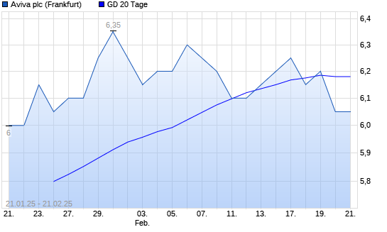 Mit dem Rücksetzer auf 6,05 EUR hat die Aviva-Aktie am 20.02.2025 die 20-Tage-Linie nach unten gekreuzt.