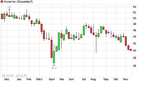Mit dem Rücksetzer auf 40,40 EUR hat die Avnet-Aktie (ISIN US0538071038) am 11.11.2025 ein neues 6-Monats-Tief erreicht und damit den Kurs vom 07.11.2025 eingestellt.