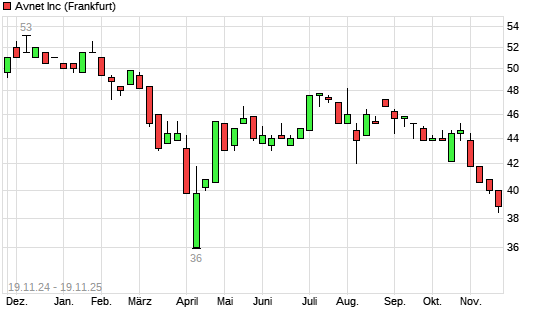 Mit dem Rücksetzer auf 38,40 EUR hat die Avnet-Aktie (ISIN US0538071038) am 18.11.2025 ein neues 6-Monats-Tief erreicht und damit den Kurs vom 14.11.2025 eingestellt.