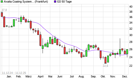 Mit dem Anstieg auf 24,80 EUR hat die Axalta Coating Systems-Aktie am 10.12.2025 die 50-Tage-Linie nach oben gekreuzt.