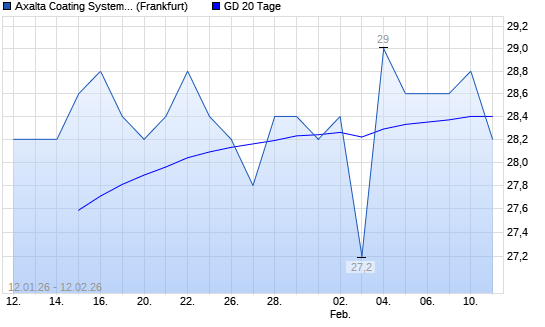 Mit dem Rücksetzer auf 28,20 EUR hat die Axalta Coating Systems-Aktie am 11.02.2026 die 20-Tage-Linie nach unten gekreuzt.