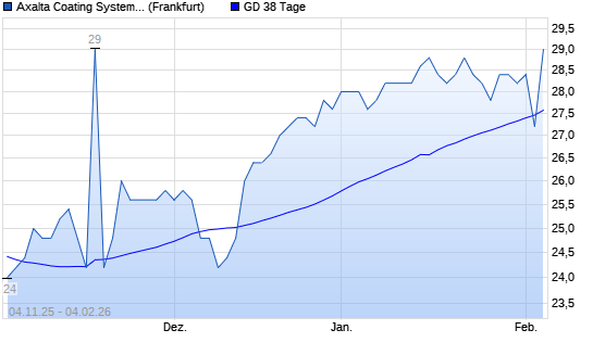 Mit dem Rücksetzer auf 27,20 EUR hat die Axalta Coating Systems-Aktie am 03.02.2026 die 38-Tage-Linie nach unten gekreuzt.