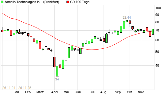 Mit dem Anstieg auf 71,62 EUR hat die Axcelis Technologies-Aktie am 25.11.2025 die 100-Tage-Linie nach oben gekreuzt.