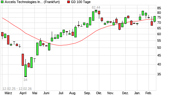 Mit dem Anstieg auf 73,50 EUR hat die Axcelis Technologies-Aktie am 11.02.2026 die 100-Tage-Linie nach oben gekreuzt.