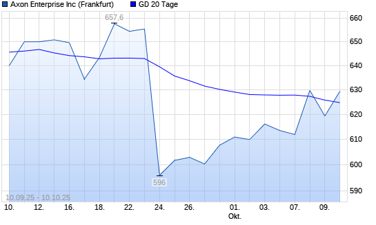 Mit dem Rücksetzer auf 619,40 EUR hat die Axon Enterprise-Aktie am 09.10.2025 die 20-Tage-Linie nach unten gekreuzt.