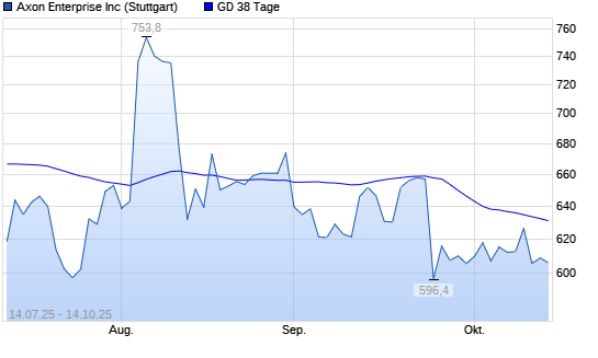 Mit dem Rücksetzer auf 606,00 EUR hat die Axon Enterprise-Aktie am 13.10.2025 die 38-Tage-Linie nach unten gekreuzt.