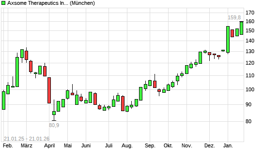 Mit dem Anstieg auf 155,90 EUR hat die Axsome Therapeutics-Aktie (ISIN US05464T1043) am 20.01.2026 ein neues All-Time-High erreicht und damit den Kurs vom 15.01.2026 eingestellt.