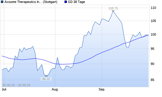 Mit dem Rücksetzer auf 98,54 EUR hat die Axsome Therapeutics-Aktie am 29.09.2025 die 38-Tage-Linie nach unten gekreuzt.