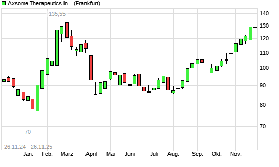 Mit dem Anstieg auf 132,60 EUR hat die Axsome Therapeutics-Aktie (ISIN US05464T1043) am 25.11.2025 ein neues All-Time-High erreicht und damit den Kurs vom 24.02.2025 eingestellt.Die Axsome Therapeutics-Aktie ...weiterlesen