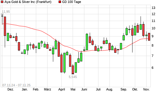 Mit dem Anstieg auf 8,94 EUR hat die Aya Gold & Silver-Aktie am 06.11.2025 die 100-Tage-Linie nach oben gekreuzt.