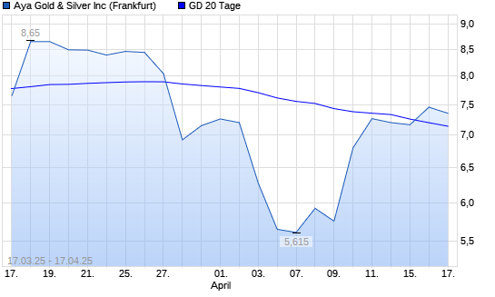 Mit dem Anstieg auf 7,45 EUR hat die Aya Gold & Silver-Aktie am 16.04.2025 die 20-Tage-Linie nach oben gekreuzt.