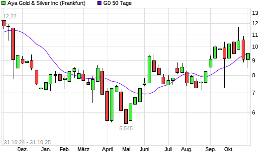 Mit dem Anstieg auf 9,52 EUR hat die Aya Gold & Silver-Aktie am 30.10.2025 die 50-Tage-Linie nach oben gekreuzt.