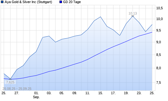 Mit dem Rücksetzer auf 9,40 EUR hat die Aya Gold & Silver-Aktie am 24.09.2025 die 20-Tage-Linie nach unten gekreuzt.