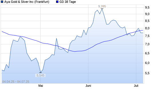 Mit dem Rücksetzer auf 7,70 EUR hat die Aya Gold & Silver-Aktie am 03.07.2025 die 38-Tage-Linie nach unten gekreuzt.